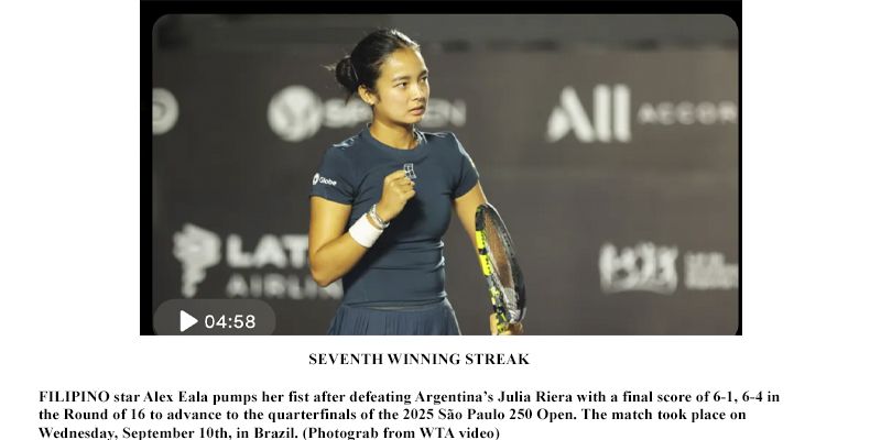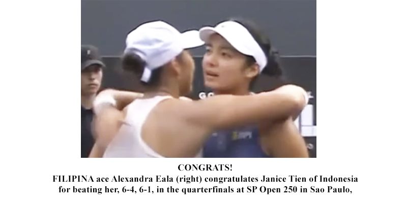 CHICAGO (PM) – JANICE Tien of Indonesia upset Filipina ace Alex Eala during the quarterfinals in SP Open in Sao Paulo, Brazil, 6-4, 6-1 Friday, stopping the Filipina ace’s winning streak at seven.
