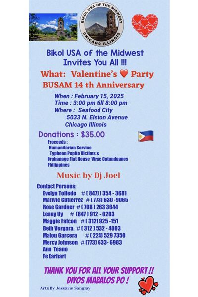 BIKOL USA of the MIDWEST TO HOLD VALENTINE FUND RAISING FOR TYPHOON VICTIMS
